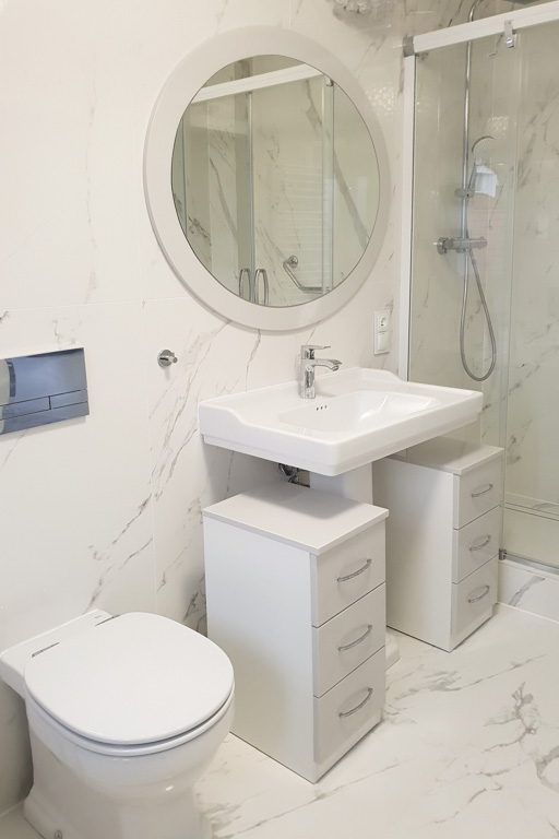 Funkcjonalna aranżacja łazienki na małej przestrzeni.
